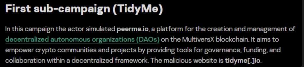 Question 3 | The threat actor set up a malicious website to mimic a platform designed for creating and managing decentralized autonomous organizations (DAOs) on the MultiversX blockchain (peerme.io). What is the name of the malicious website the attacker created to simulate this platform?