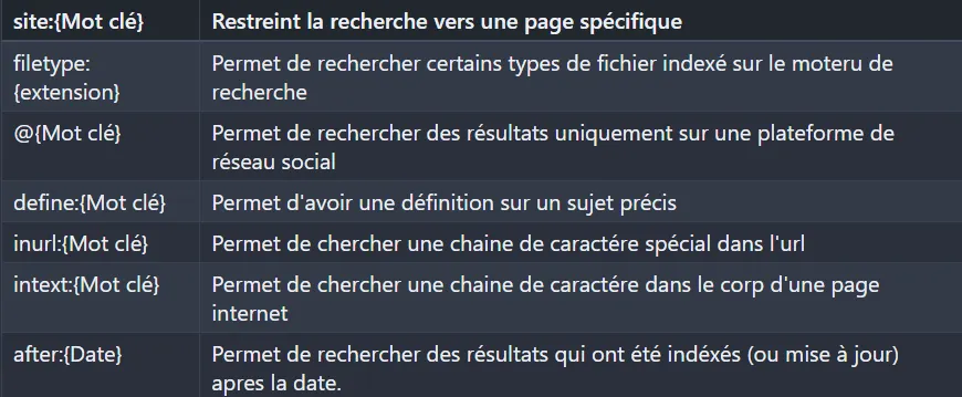 Les recherches avancées sont apparues avec l’évolution des moteurs de recherche pour répondre au besoin croissant de filtrer, cibler et extraire rapidement des informations précises dans l’immense quantité de données disponibles sur Internet. Ces recherches peuvent être utiles dans bien des domaines ! En passant par le contenu OSINT pour rechercher des informations relatives à un sujet, la cybersécurité avec la possibilité de détecter des vulnérabilités ou même de cartographier des sites internet. Vous l’aurez compris, maîtriser ces recherches peut être un gain de temps et de performance au quotidien, en permettant d’atteindre rapidement et précisément l’objectif recherché.