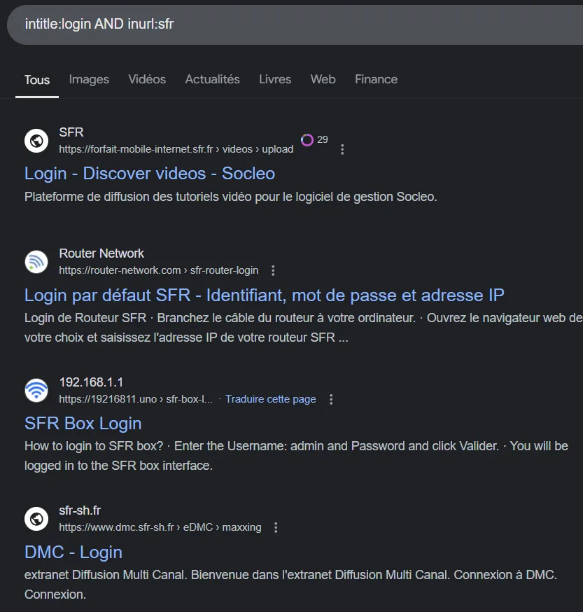 Cela va nous donner tous les portails de login en lien avec SFR !