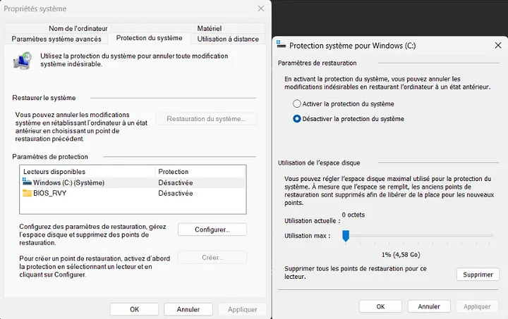 Vous pouvez ensuite sélectionner le disque dur à gérer afin d’activer les “protections systèmes” dans le but de les activer.